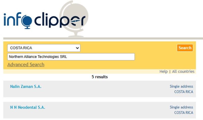 Если проверить реестр юрлиц Коста-Рики с помощью специального сервиса можно узнать, что компании под названием Northern Alliance Technologies SRL среди них нет и близко. Это значит, что лжеброкер не имеет официальной регистрации, а лишь врет потенциальным жертвам, чтобы выглядеть в их глазах солидно и перспективно.