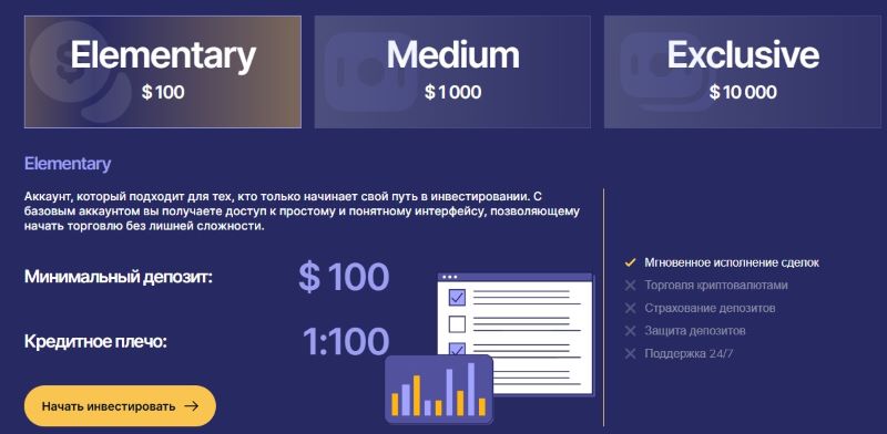 Редакция scaud.info узнала, что для работы на платформе компания «Акфонтус» предлагает следующие счета, в зависимости от личного опыта пользователя и выбранных стратегий: