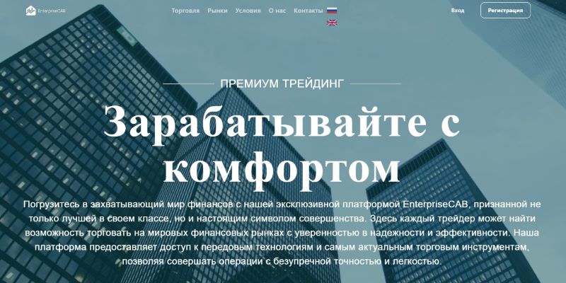 Компания под названием EnterpriseCAB называет себя ведущим поставщиком брокерских услуг, с которым можно получать прибыль за счет торговли ликвидными финансовыми инструментами. По заверениям представителей проекта, свои услуги он оказывает с 2012 года, а в его обслуживании находится более 87 000 трейдеров. Редакция scaud.info ставит заявленные сведения под сомнение, так как домен презентационного сайта enterprisecab.com был зарегистрирован только в мае 2025 года.