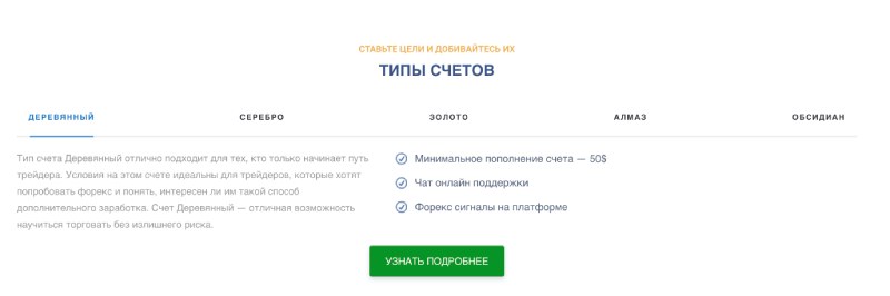 Брокер заявляет, что для своих клиентов доступны пять различных типов счетов: