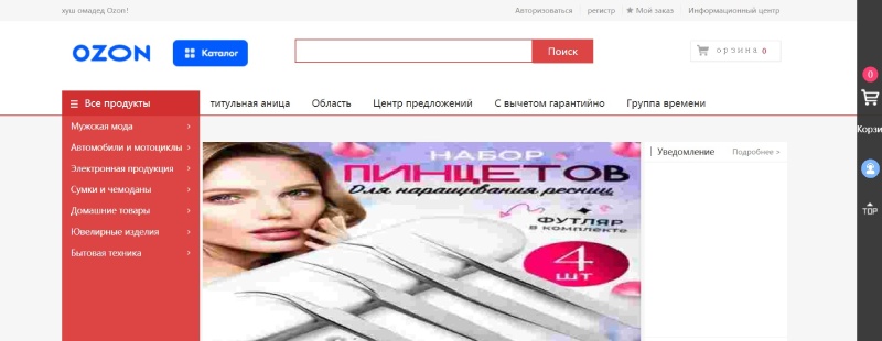 Сайт представляет собой типичную маркетинговую площадку, где размещены различные категории товаров: от одежды и бытовой техники до автомобилей и ювелирных изделий.