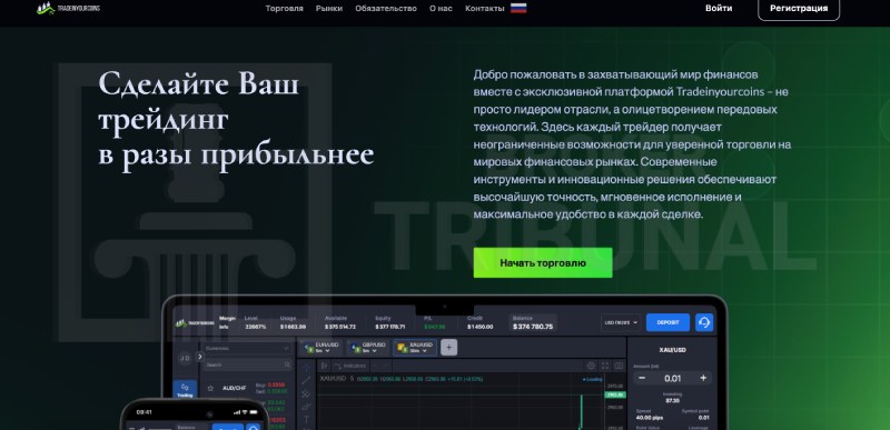 Регистрация на сайте tradeinyourcoins.com