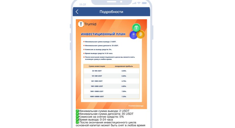 Компания Trumid позиционирует себя как инвестиционный проект, предлагающий стабильный доход в интернете. Эксперты Scaud заметили, что проект использует логотип известной американской организации, сотрудничество с которой не подтверждено, и не предоставляет информации о легальном статусе своего проекта.